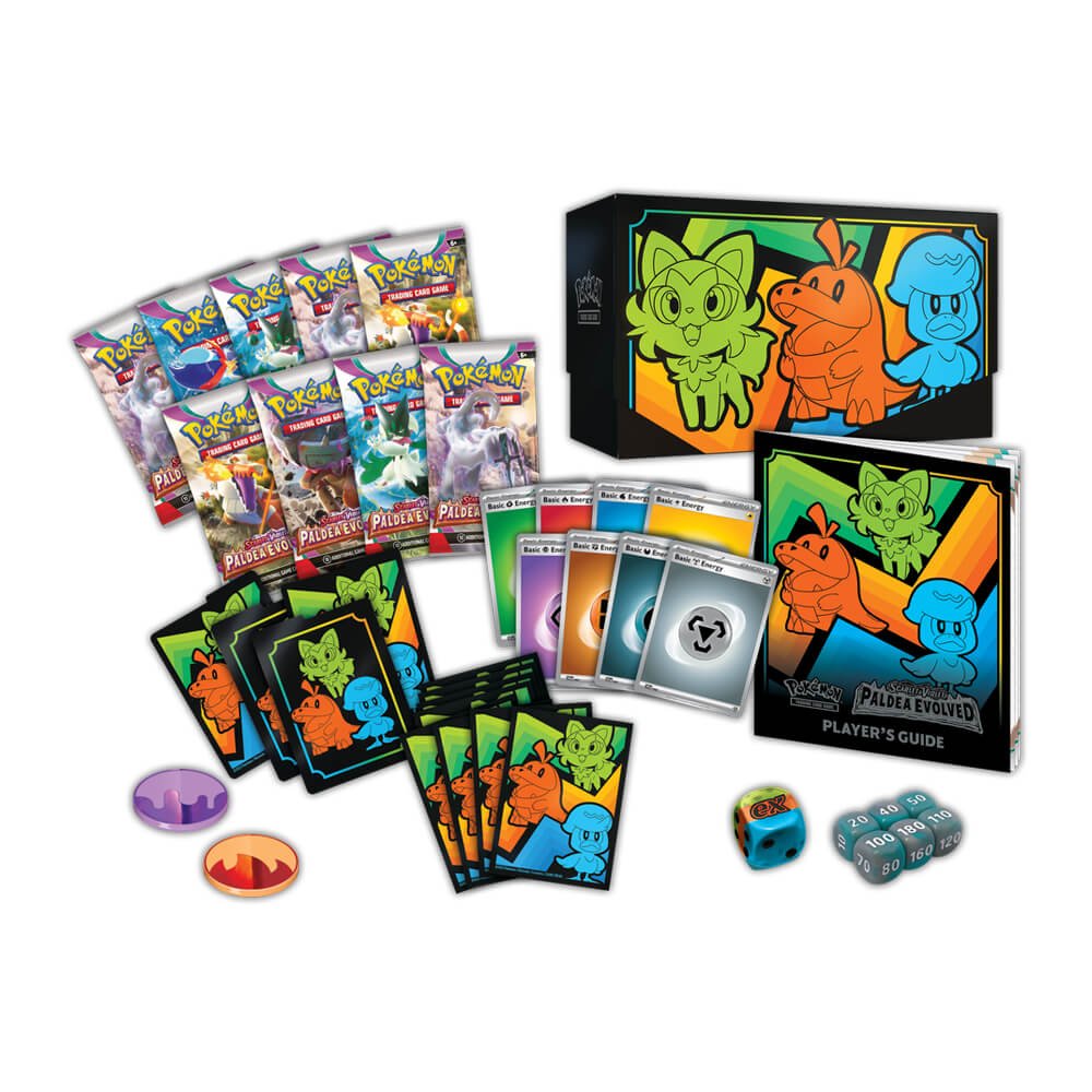 The Pokémon TCG: Scarlet & Violet—Paldea Evolved Elite Trainer Box includes: